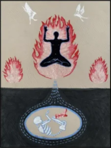 Trabaja con imágenes arquetípicas, criaturas híbridas que emergen como símbolos activos, resonancias de lo inconsciente colectivo. El cuerpo no solo como una entidad biológica sino como un archivo vivo, en constante transformación. Cuerpos físicos, digitales y simbólicos que son representados, disueltos o reconfigurados a través de procesos que exploran tanto lo visible como lo invisible. Pretende invocar una especie de alquimia visual donde lo ritual se encuentra con lo virtual. Donde las estructuras mitológicas son reprogramadas dentro de un marco contemporáneo. Este esoterismo no es un anacronismo, sino una forma de hackear la racionalidad dominante. La tecnología se convierte en una extensión del gesto mágico. Una conexión entre el pasado místico y el futuro especulativo.